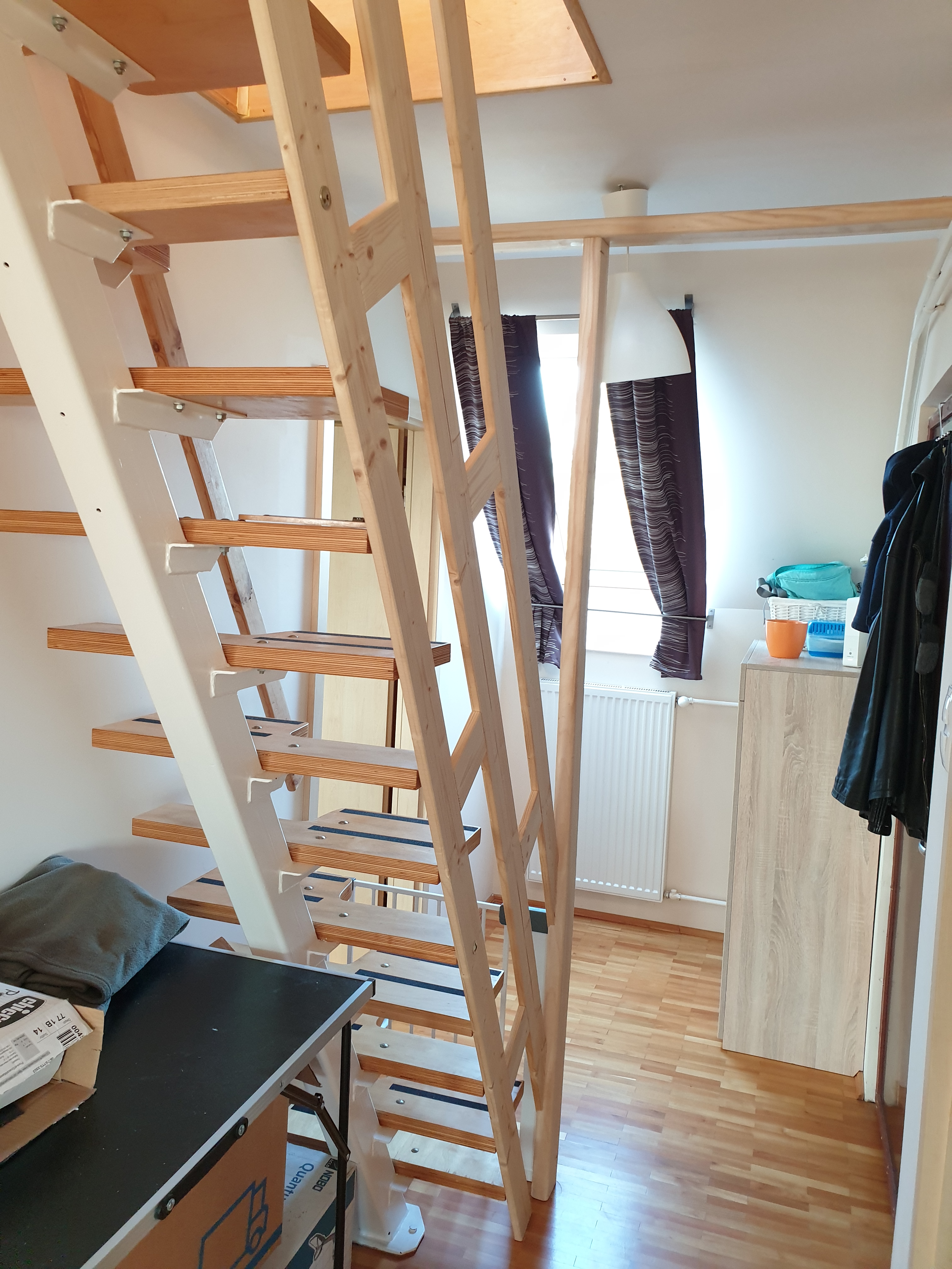 Biztonsági okokból vált szükségessé a képen látható lépcső lezárása oldalról. A lépcső alján látható oszlop elég erős ahhoz, hogy babarács legyen feszíthető a fal és közé.