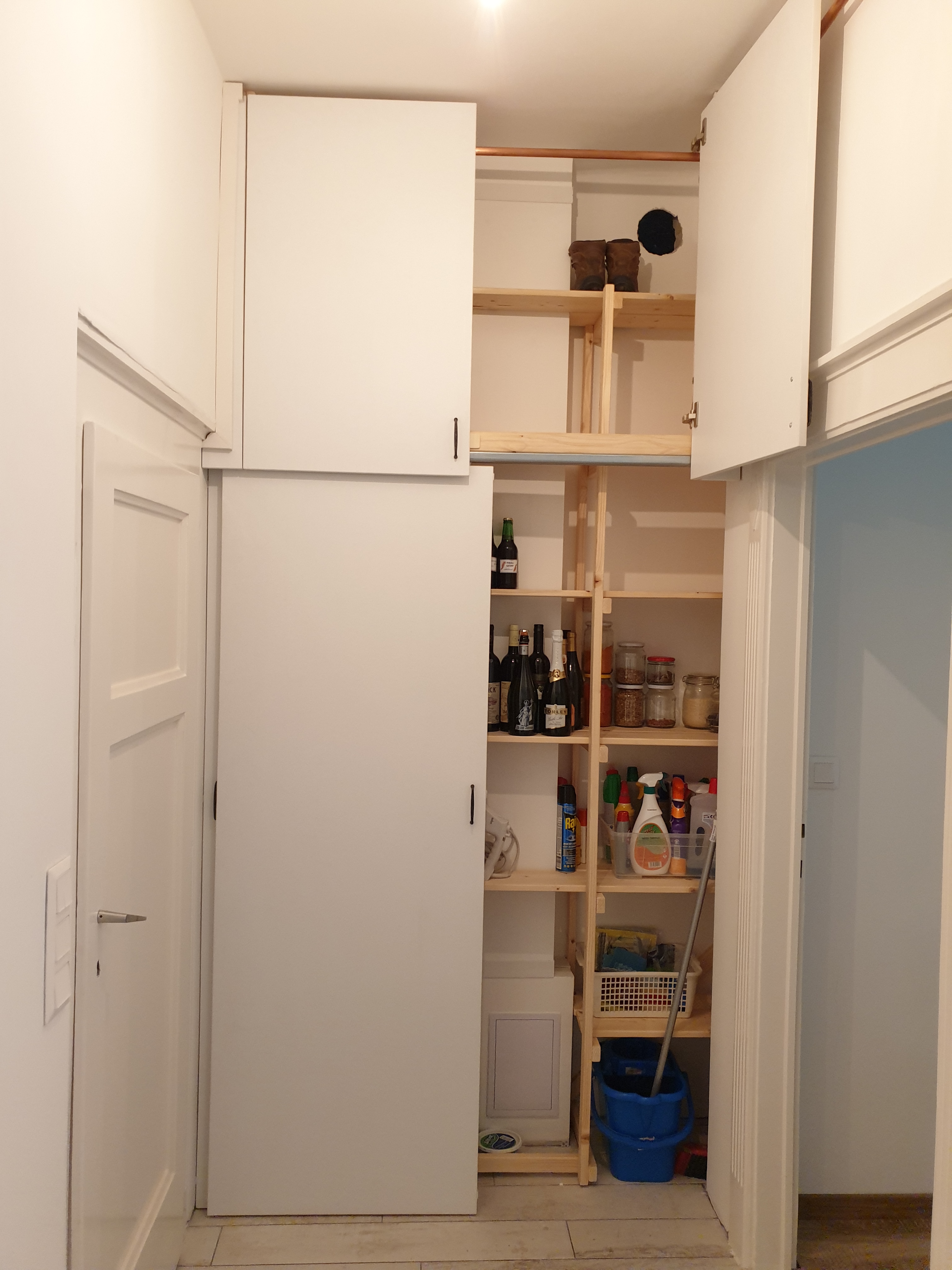 A megrendelő jóváhagyásával készítettem néhány új képet, miután elkezdték belakni a kamrát. Sokkal többet mond számomra egy-egy ilyen kép, mintha a teljesen üres bútort fotóztam volna.