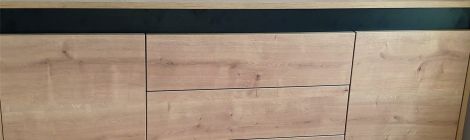 A rendkívül elegáns és praktikus bútor egy nappaliban lett elhelyezve. Az ajtók és fiókok nyitását kilökő szerelvény biztosítja.