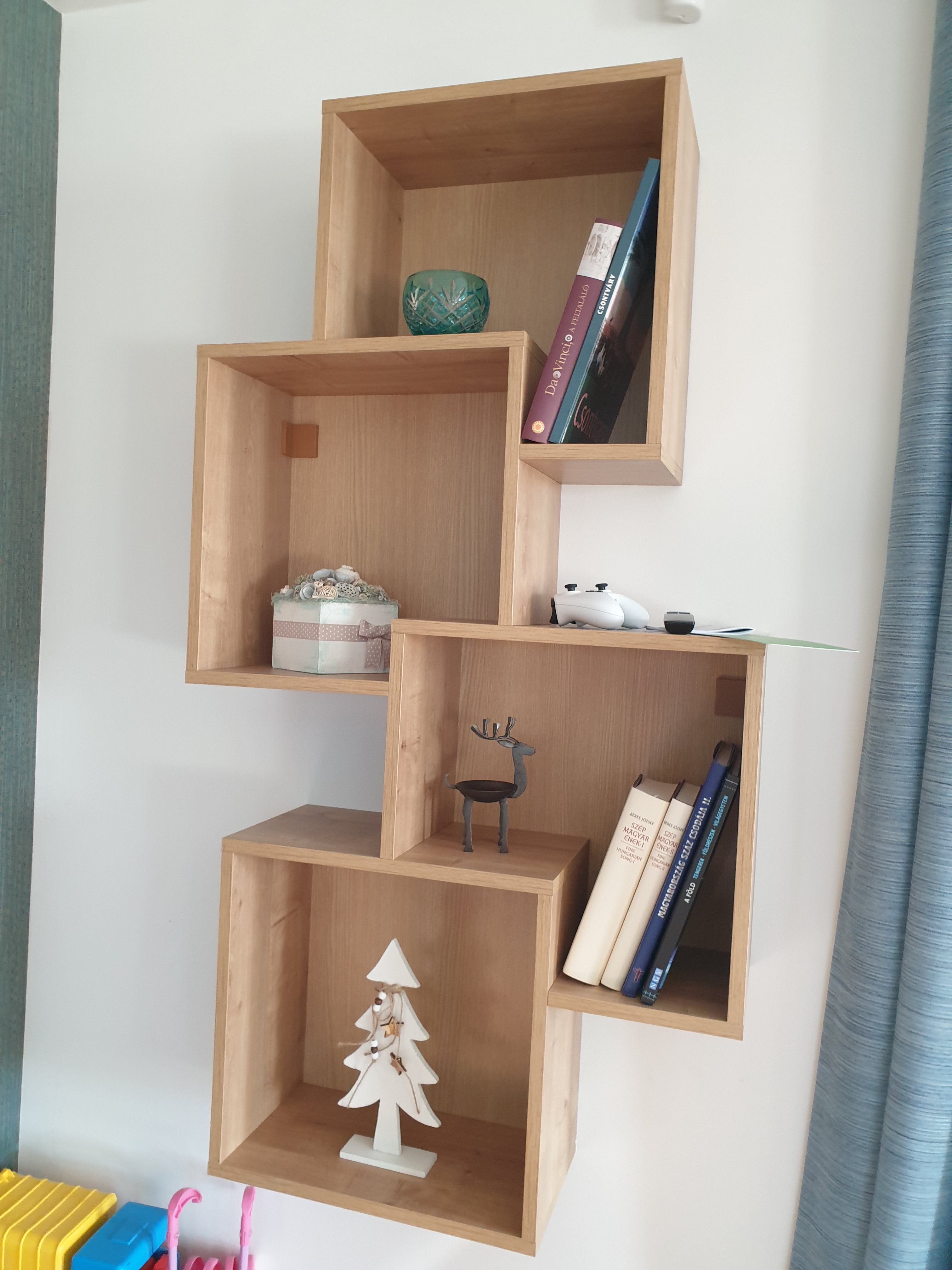 Egyedi fali polc 2022-03-17 · by bencef · in Bútorok. · Egy igazán egyedi fali polc mely méltán lett a nappali dísze. A lehető legszebb felületek érdekében összeállításánál csak lapos tiplit és faragasztót használtunk. Megosztás: Click to share on X(Új ablakban nyílik meg) X Facebookon való megosztáshoz kattintás ide.(Új ablakban nyílik meg) Facebook Tetszik Betöltés...