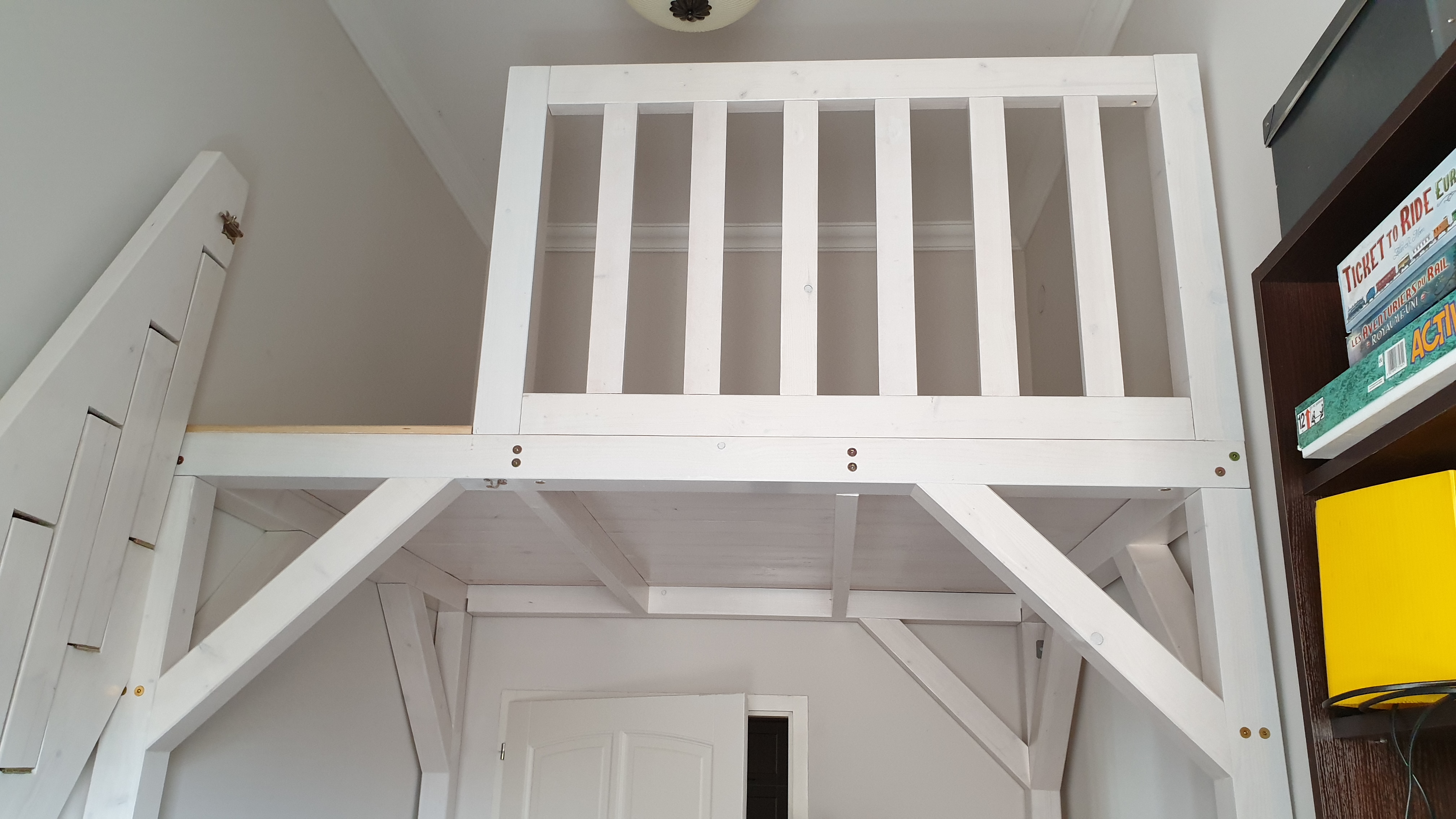 Egy régi, nagy belmagasságú polgári lakásban kerültek megépítésre az alábbi galériák. Fényes fehér lazúrfestékkel kezelt fenyőből készültek, a padlófelület selyemfényű lakkal kezelt hajópadló. A kisebbik galéria kapott egy ma igen divatos falra felhajtható lépcsőt a jobb helykihasználás érdekében, míg a másikra egy fix sarok lépcsőn lehet feljutni.