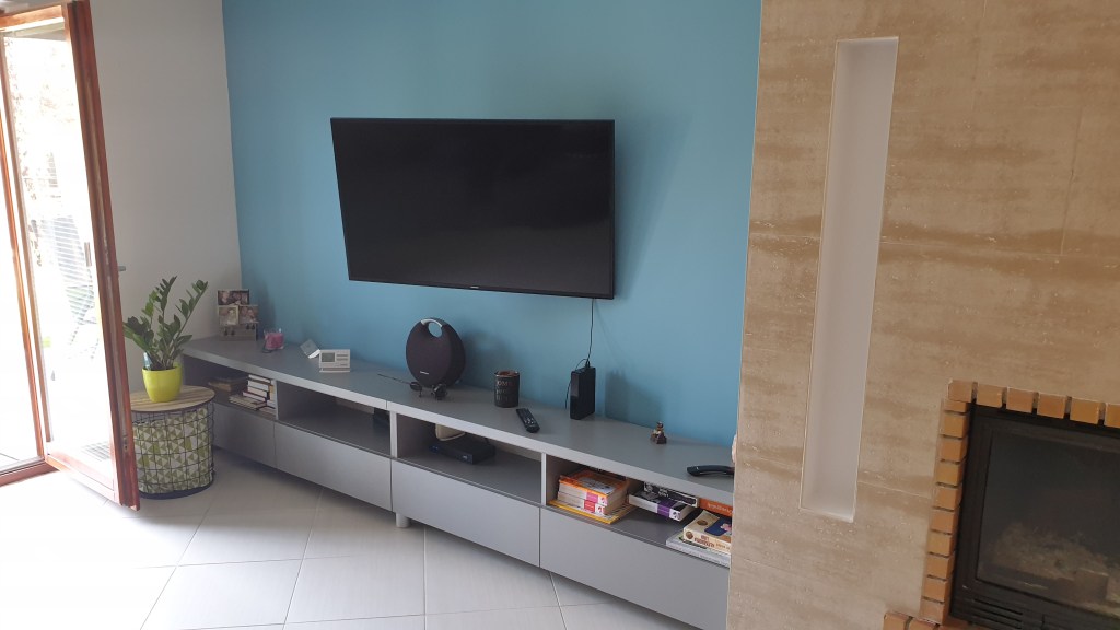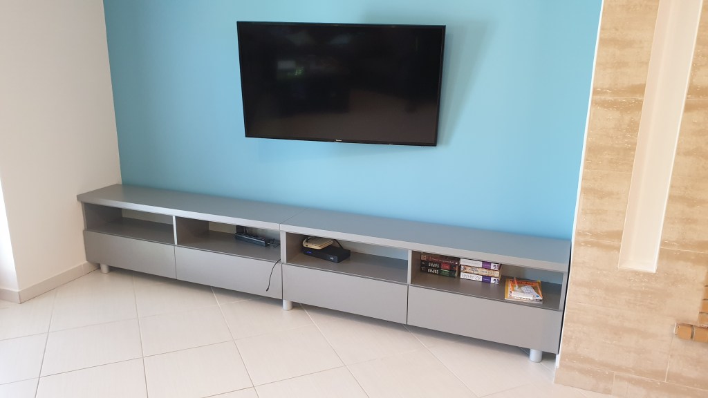 Nappali multimédia tároló 2022-06-23 · by bencef · in Bútorok. · Ez a széles és lapos tároló egy tv alatt lett elhelyezve sok helyet adva a mindennapi használati tárgyaknak. A pult dupla bútorlapból készült. Kiegészítésként a bal oldalra fali polcok kerültek felhelyezésre. Megosztás: Click to share on X(Új ablakban nyílik meg) X Facebookon való megosztáshoz kattintás ide.(Új ablakban nyílik meg) Facebook Tetszik Betöltés...