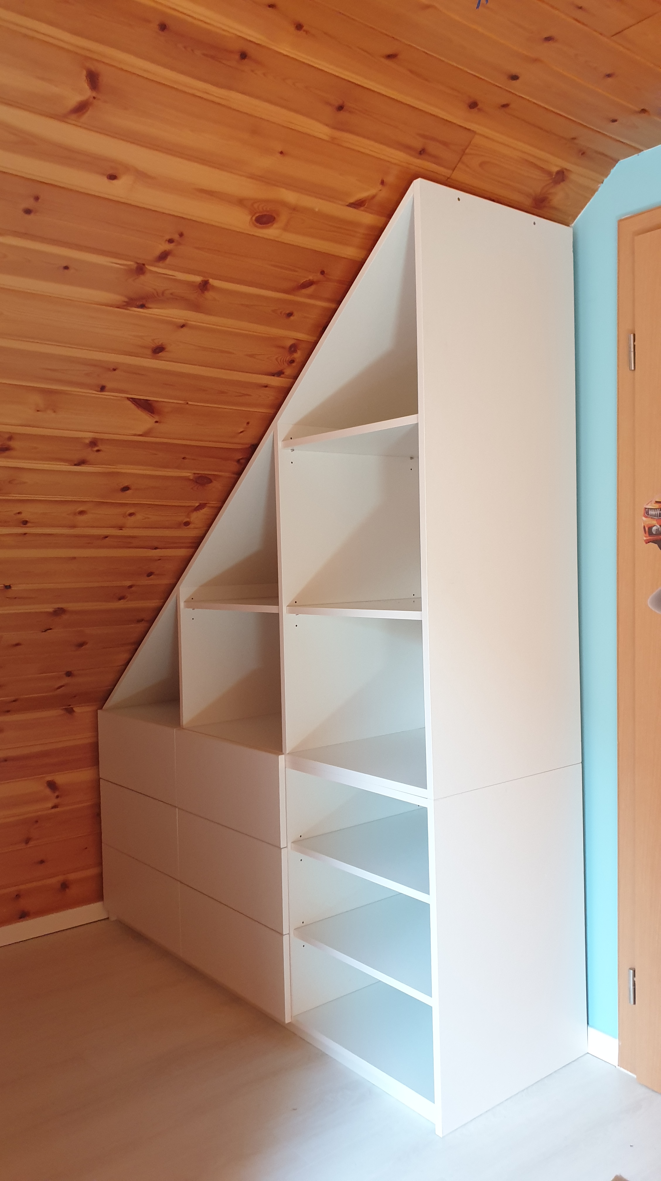 Tetőtéri szekrények 2023-03-09 · by bencef · in Bútorok. · Ezeknél a tetőtéri szekrényeknél a térkihasználás és minél több tárolóhely kialakítása volt a cél. A bútorok fehér színű bútorlapból készültek és a falhoz lettek rögzítve. Megosztás: Click to share on X(Új ablakban nyílik meg) X Facebookon való megosztáshoz kattintás ide.(Új ablakban nyílik meg) Facebook Tetszik Betöltés...