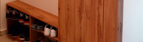 Ez az előszoba szekrény kombináció már ismerős lehet. A kazán eltakarása mellett kialakításra került rengeteg tárolóhely cipőknek, kabátoknak, valamint egy kényelmes kis ülőke is. A riasztó kiugró dobozkáját a kabátok […]